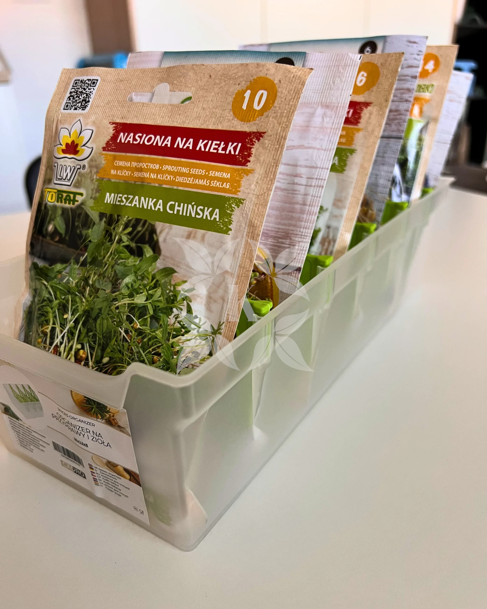 Tento kompaktní organizér o délce 30,3 cm vnáší řád do chaosu sáčků se semínky na klíčení a microgreens. Díky vyjímatelným přihrádkám, které drží balení ve vzpřímené poloze, můžete ve své sbírce listovat jako v kartotéce a okamžitě shora najít přesně to, co hledáte. Je to praktický a snadno omyvatelný pomocník, který udrží vaši sbírku semínek uspořádanou a vždy připravenou k dalšímu klíčení. Organizér je vhodný na malé sáčky semínek.